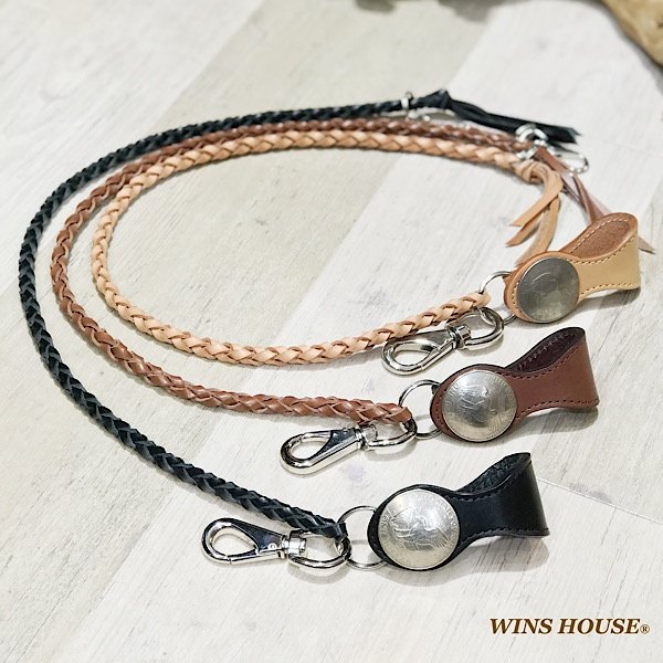 WINSHOUSE 【ウインズハウス】5セントコンチョ レザーチェーン 本革【牛革】 4つ編み ウォレット レザーロープ