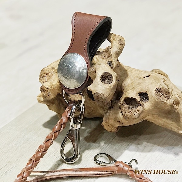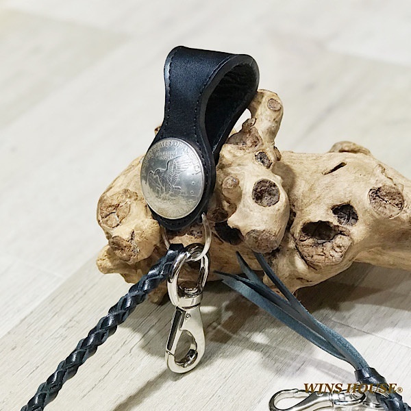 WINSHOUSE 【ウインズハウス】 USA 1ドルコンチョ レザーチェーン 本革【牛革】 4つ編み ウォレット レザーロープ